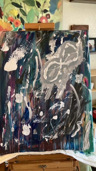 During the Fall of 2022, when I was focusing on purging things in drawers, shelves, and such in my house, I was sorting through the pile of collective slips of paper, business cards, receipts, and gift certificates from my accumulated paraphernalia. I unfolded a crisp white paper with florabowley.com written on it. I was a bit perplexed. I said, "What is this?" So, I took a break from sorting and flipped open my laptop to look it up. As soon as I saw the website details I remembered my conversation with my friend. "Oh my gosh! This! This is so awesome!" I found myself on a ride into a different creative world that resonated with me. No rules. Just paint - intuitively. Use what you have and let the canvas speak to you. Simple and not fussy. I loved it! Abstract art has always spoke to me. I thought maybe this would be a great thing to start in January 2023. I was so excited, the next week I bought some canvases, sponges, a painting palette, paints, brushes, and dug out brushes my daughter Katie left behind. A few weeks later I randomly found a wooden easel at a thrift shop. I was ready. Ready to paint. This was September.